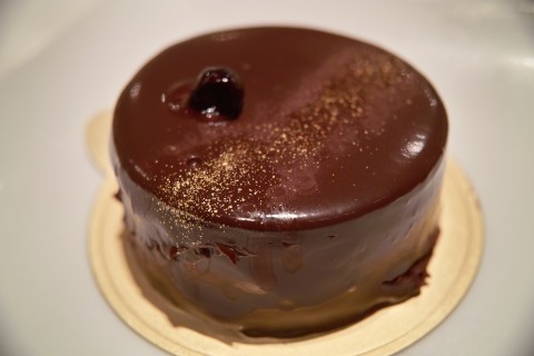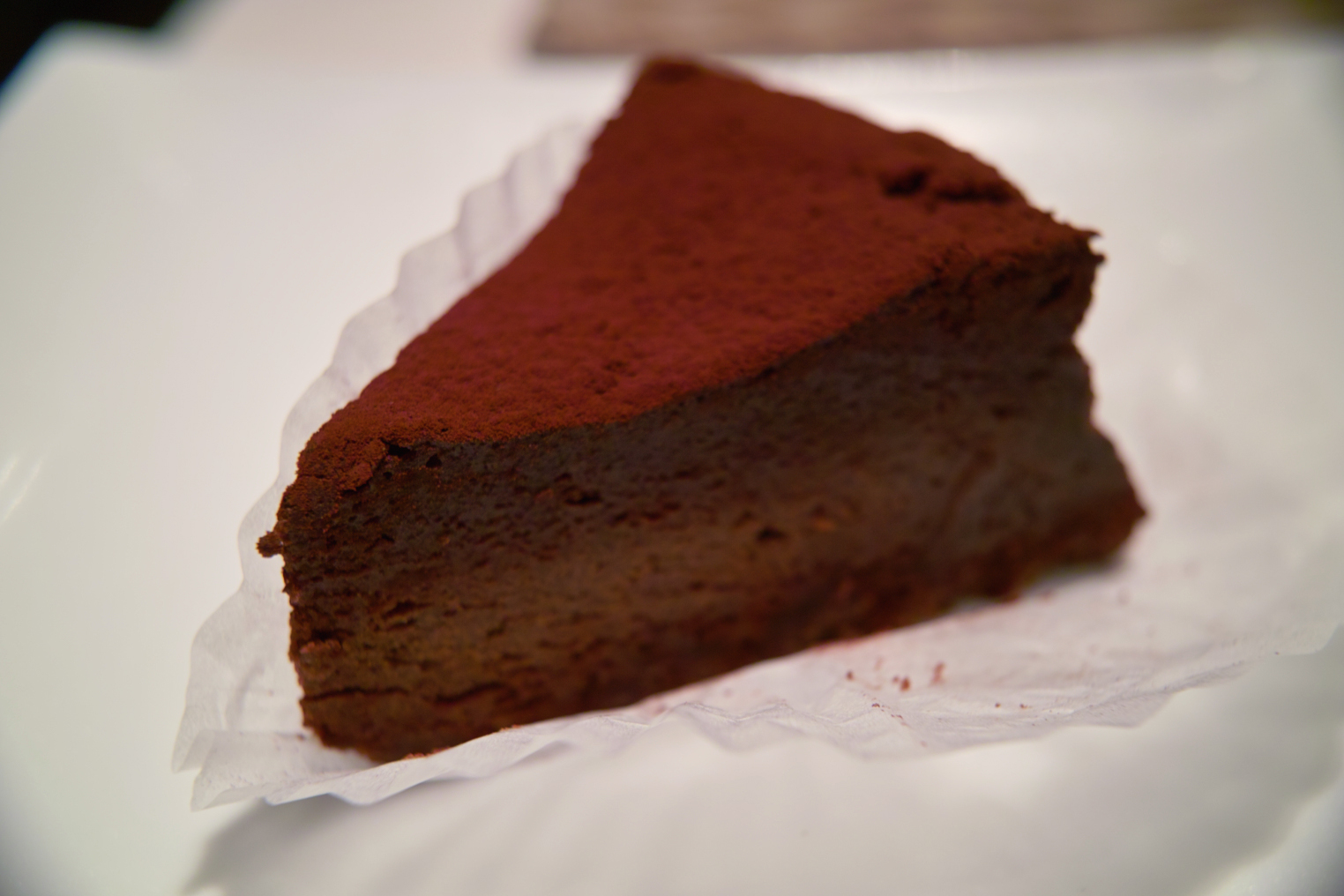 もうひとつのケーキはフェレ オ ショコラ。小麦粉を使わずに作ったケーキで、純粋なチョコレートの食感を味わえますという触れ込みでした。ココアパウダーがたっぷりです。