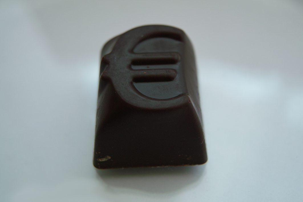 キャラメルの香りがするミルクチョコレートの中には甘いヘーゼルナッツのペーストが入っています。ミルクの香りが良い上にナッツの香りも上手く溶け込んできます。金融危機が騒がれている此の頃ではありますが、やはりここはユーロと一緒に買いたいです。