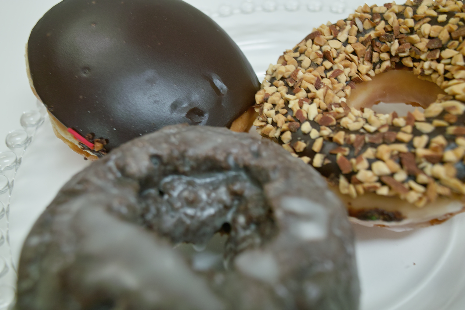 そして、並んだ後は当然喜びの実食です。左上から時計回りに、チョコレートカスタード、チョコレート・アーモンドクランチ、オールドファッション・チョコレートの3種類。