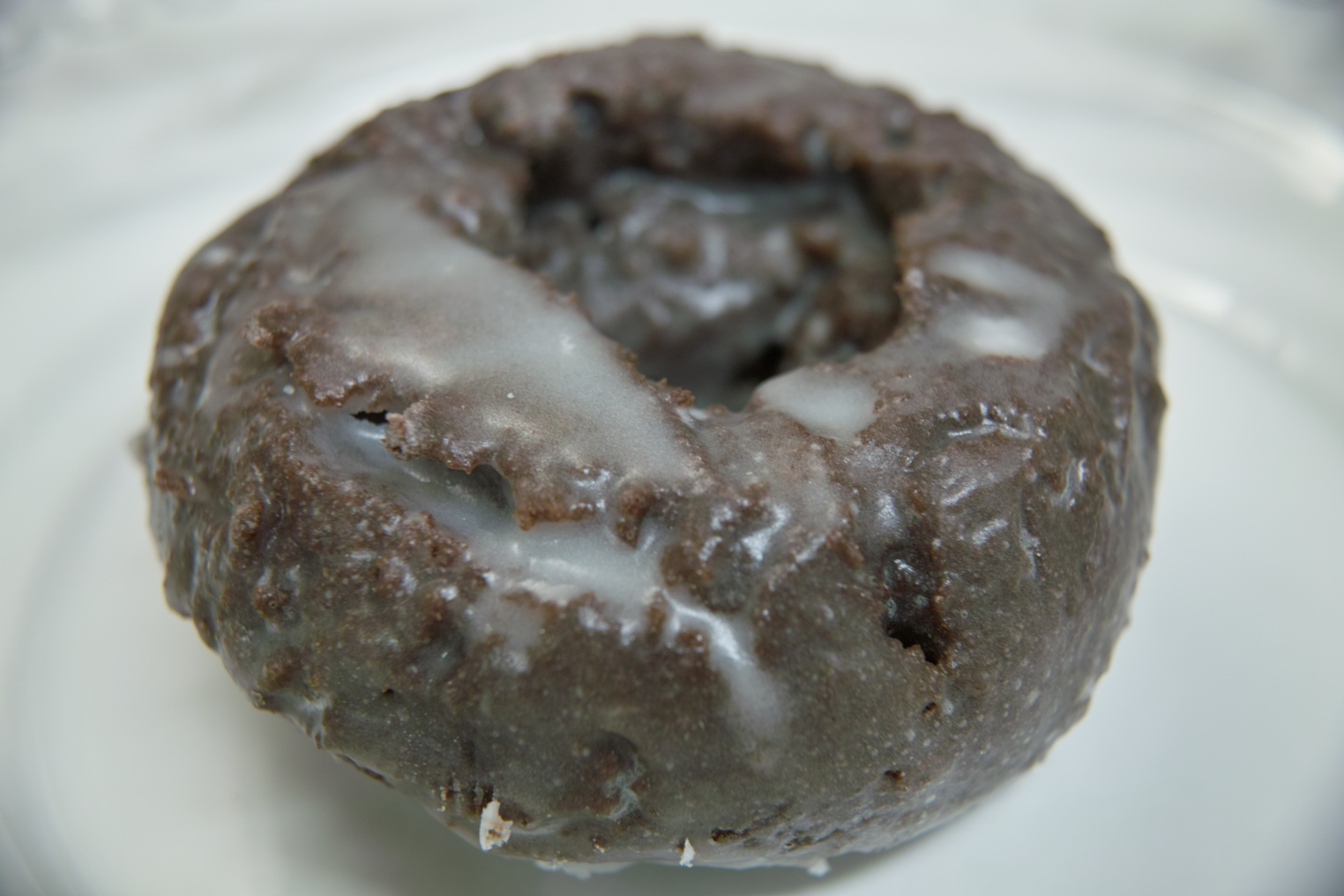 「チョコレート好きの皆さん、このドーナツはあなたのためのものです。グレーズのかかったリッチでしっとりしたオールドファッションタイプのチョコレートケーキドーナツです!」と、宣伝文も私向き。マーケットセグメントのモデルが、私だったんじゃないのかしら。ミスドのオールドファッションよりやや重めで目の詰まった生地がいかにもコーヒー向き。厚めにコーティングされたシュガー・グレーズドに歯応えを感じ、おもわず身もだえしてしまいます。大大好き。