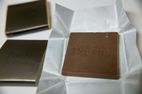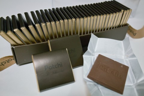 金色の包み紙(妙に上質)の中はPatchiのロゴが入ったミルクチョコレートです。