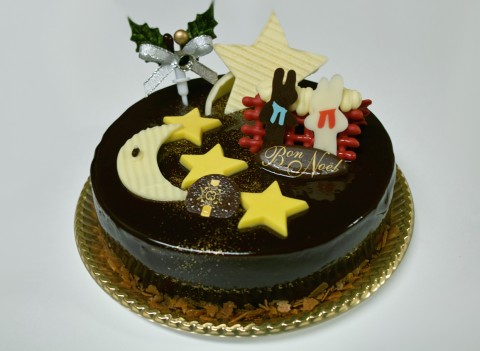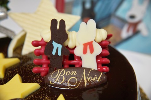 今年のクリスマスのために阪急オリジナルで描いてもらった原画「星に願いを」を元に、「パリの名門料理学校「ル・コルドン・ブルー」のシェフがケーキを製作。 ココアを練り込んだアーモンドビスキュイとムース、その間にはいちごとフランボワーズのコンポート。甘味と酸味、すべてがグッドバランス」なケーキです。