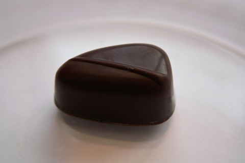 これも、コーティングのビターチョコレートは実に上質。一舐めでその質の良さがわかるのも、香りにクセがないからです。苦味がクリアで適度に加えられた甘味がその酸味を際立たせています。センターもビターチョコレートでできたガナッシュ。滑らかに軽やかに溶けて豊かな香りを放ちながらとろりと舌の上を流れます。