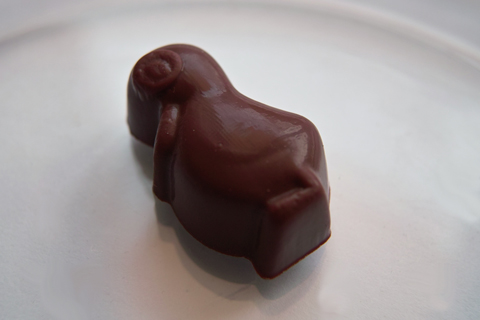 アニモ キャラメル(Animaux Caramel)は「ミルクチョコレートの中にタヒチ産バニラで香り付けしたキャラメルソース。」ひょうきんな形がかわいいです。キャラクター好きの私は、こういうちょっと不細工なくらいの顔に弱いのです。つい味の好みを度外視して買っちゃいました。