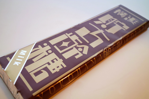 「横浜貯古齢糖は、いにしへの憧れと懐かしさをカタチにした、ビッグサイズのチョコレート。印象的なレトロの文字とラベルの色が、昔の横浜へタイムトリップさせてくれます。」
