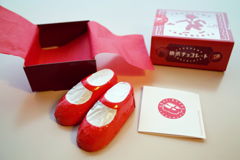 ブルーダルチョコレート、横浜貯古齢糖に引き続き、横浜みやげの専門店メイドインヨコハマ(madeinyokohama)のチョコレートをもう一つ。横浜みなとのシンボルと言えば、野口雨情作詞の童謡にもなった「赤い靴」。これをチョコレートにしたのが赤い靴チョコレートです。マッチ箱サイズで小さいしお値段も手ごろだしパッケージもかわいいのでお土産に最適。