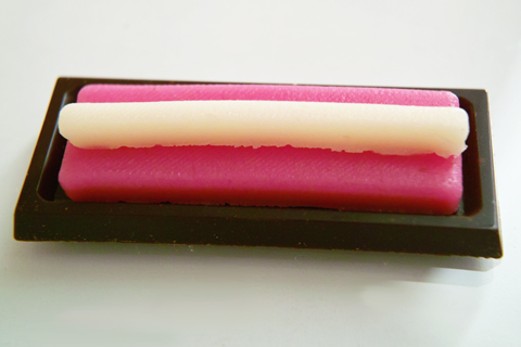 ピンクのマジパンがマグロの赤味を連想させるチョコレートです。