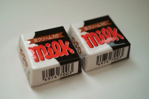なんだか懐かしいものを買いました。本日のオヤツは皆さんおなじみの駄菓子、チロルチョコの定番商品、ミルクです。
