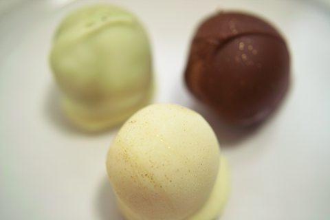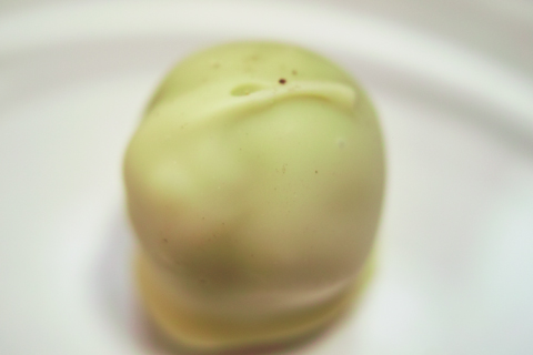 まずはホワイトチョコレートのトリュフ。やや緑がかった色をしています。