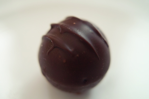 中のガナッシュはホワイトチョコレート。ミルクの風味に包まれて洋酒の香りがたちまち口一杯に広がります。そして、コーティングのチョコレートの苦味を伴って潮のように引いていきました。洋酒ペアー・ウィリアムスの香りがメインですが、ホワイトチョコレートのたっぷりのミルク感に包み、とても食べやすくできています。