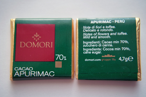 本日は緑色ラベルのアプリマック(APURIMAC)70%カカオのキャレです。トリニタリオ種です。