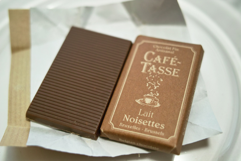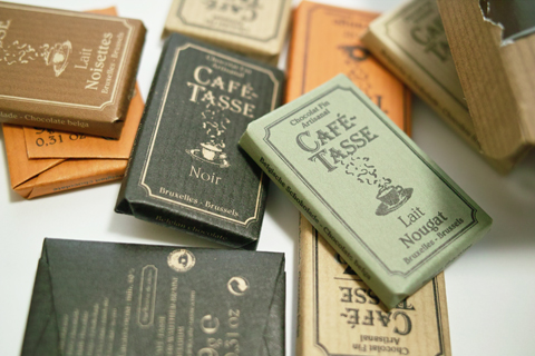 カフェタッセはフランス語でコーヒーカップの意味。その名の通りコーヒーとのフィーリングを追求したベルギー産のチョコレートです。生産性よりも、衛星、品質管理、トレーサビリティを優先し、古くからの技術にこだわって製品作りをしています。箱詰めは手作業で行い、パッケージの材料にはリサイクルなもののみを使用しています。