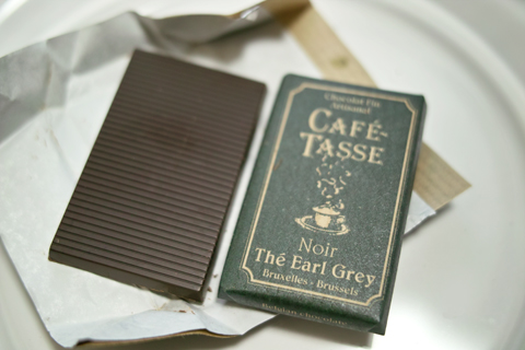 ナッティーなビターチョコレートにアールグレイのベルガモットの香りが清々しさ加えています。茶葉がカリカリと歯に当り、口の中からチョコレートをぬぐってさっぱりとした余韻になります。こういう効果は面白いですね。