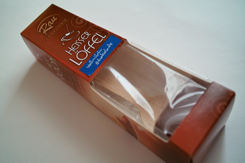 ドイツの製菓メーカー、ラウ(Confiserie Rau)のスプーンチョコレートミルク(Heisser Löffel Vollmilchschokolade Kakao 38% mind.)です。