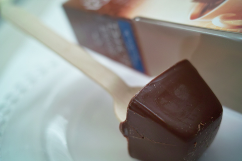 名前のとおり、四角いミルクチョコレートに木製のスプーンが刺さった形です。