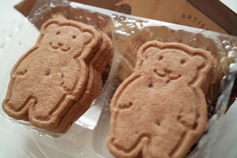 「ベルギー産チョコレートを使用したクッキーで、子供も大好きなクマの形がかわいい。28.6%のバターを使用し、人工着色料や保存料は使用してい」ないそうです。