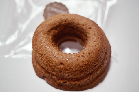 マーガリンの香りがやさしく鼻をくすぐります。ココアの香るスポンジ生地にチョコレートの粒が混ぜ込んであります。このふわふわ感はドーナツ型のマドレーヌだね。やさしい甘さが紅茶に合います。